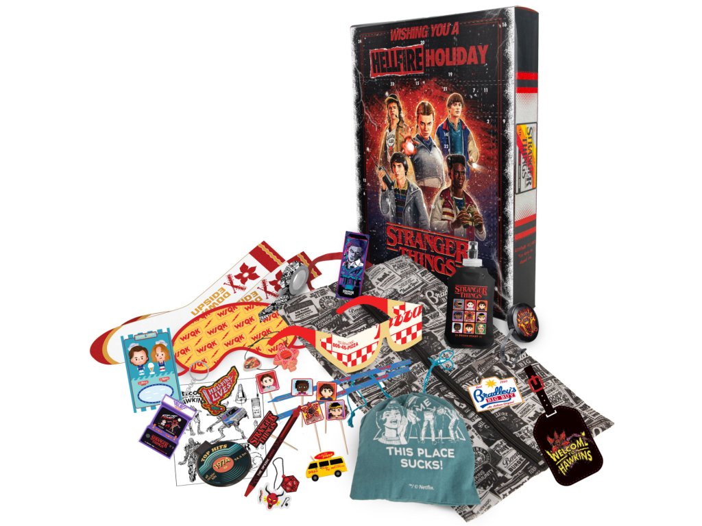 Každý deň otvorte dvere a objavte prekvapivé papiernictvo, doplnky a ďalšie a ponorte sa do sveta Stranger Things počas sviatočného obdobia Hellfire!