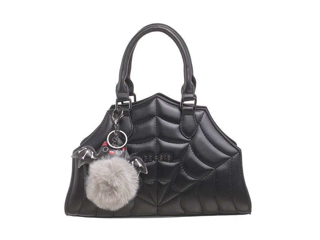 Čierna Halloweenská prešívaná kabelka pavučinou a s príveskom netopiera - Bessie London