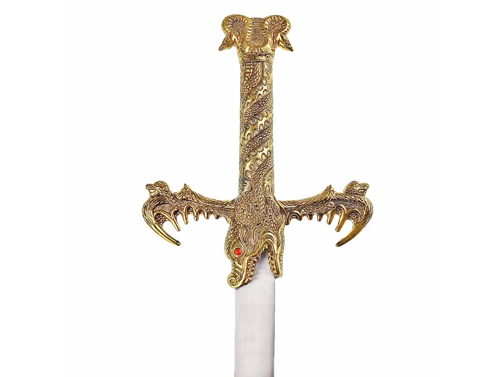 Za čias, kedy svetu vládli kúzla a magický tvorovia, sa po oblohe preháňali draci osedlaný jazdcami. Dračí jazdci ktorý boli v spojení s týmito mocnými tvormi boli váženými a obávanými bojovníkmi. Vďaka svojim drakom a mágii, ktorá skrz ne prúdila, vládli ohromnou silou. Avšak občas je potrebné použiť chladné ostrie. Dračí jazdci disponovali najlepšími zbraňami, z najlepších kovov. Náš tím vám s radosťou predstavuje oceľovú repliku meča "AEGON DRAGONRIDER". Replika "AEGON DRAGONRIDER" je voľne inšpirovanou fantasy zbraňou podľa štandardov fantasy zbraní z príbehov s drakmi. Ide o reálnu repliku fantasy meča o veľkosti 1: 1 s vysoko detailným spracovaním. Čepeľ meča "AEGON DRAGONRIDER" je vyrobená z kvalitnej nehrdzavejúcej ocele, takže starosti o údržbu môžete pustiť z hlavy) Na ostrí nájdete krásne vytiahnutý výbrus ostria, ale čepeľ je z dôvodu bezpečnosti tupá (ale naostriť si ju môžete:) Ide o nebojovú repliku , teda neodporúčame s touto zbraňou vyraziť do boja. Rukoväť meča "AEGON DRAGONRIDER" je príkladom umenia a zbraní.Celú rukoväť tvorí tvar mohutného draka! Záštitu tvoria krídla, rukoväť telo a z papule draka vylieza samotná čepeľ. Materiál celej rukoväte je nerezová oceľ, na ktoré nájdete dych berúce detailné reliéfy.Povrch ocele je pozlátený, takže celá rukoväť tvorí dojem zlata.