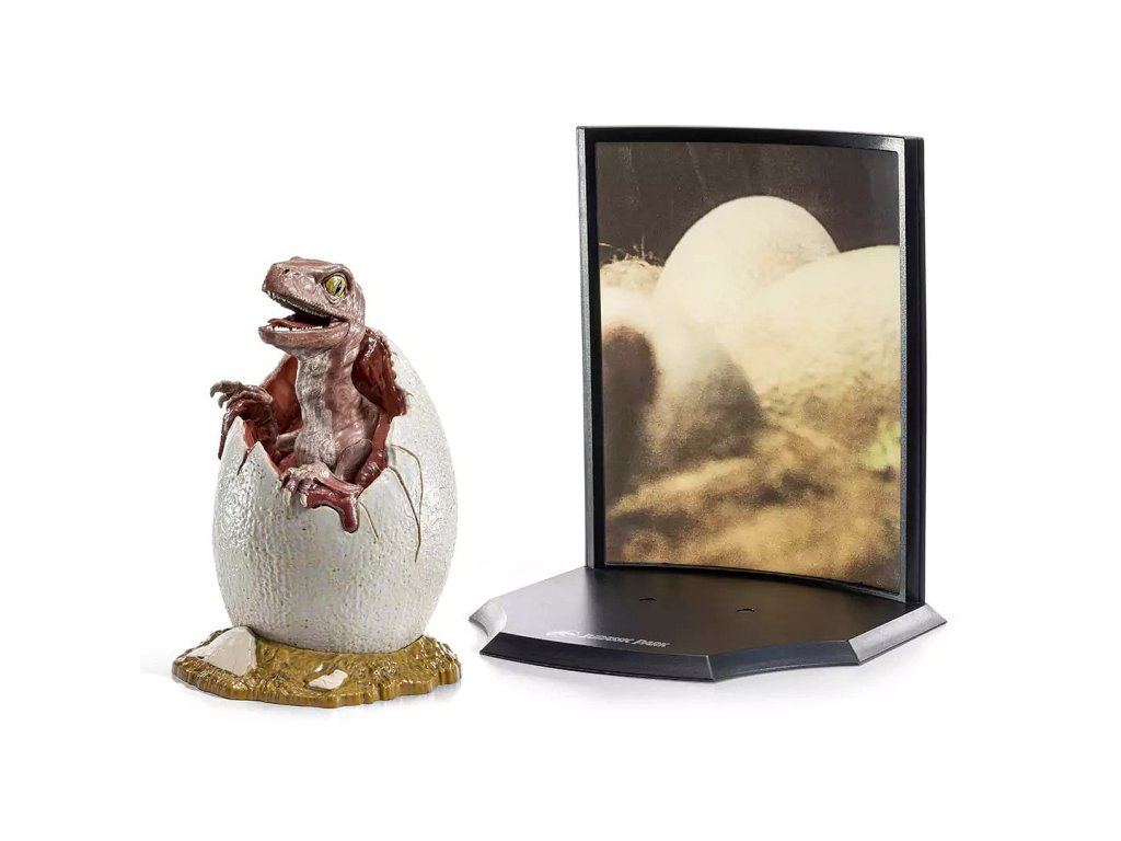 Krabice je poškozená. (viz foto) Krásná sběratelská figurka velociraptora líhnoucího se z vejce potěší milovníky filmů Jurský park. Figurka malého dinosaura se dá sejmout z podstavce a tvoří hezké diorama, které bude ozdobou vaší police, knihovny i sbírky.