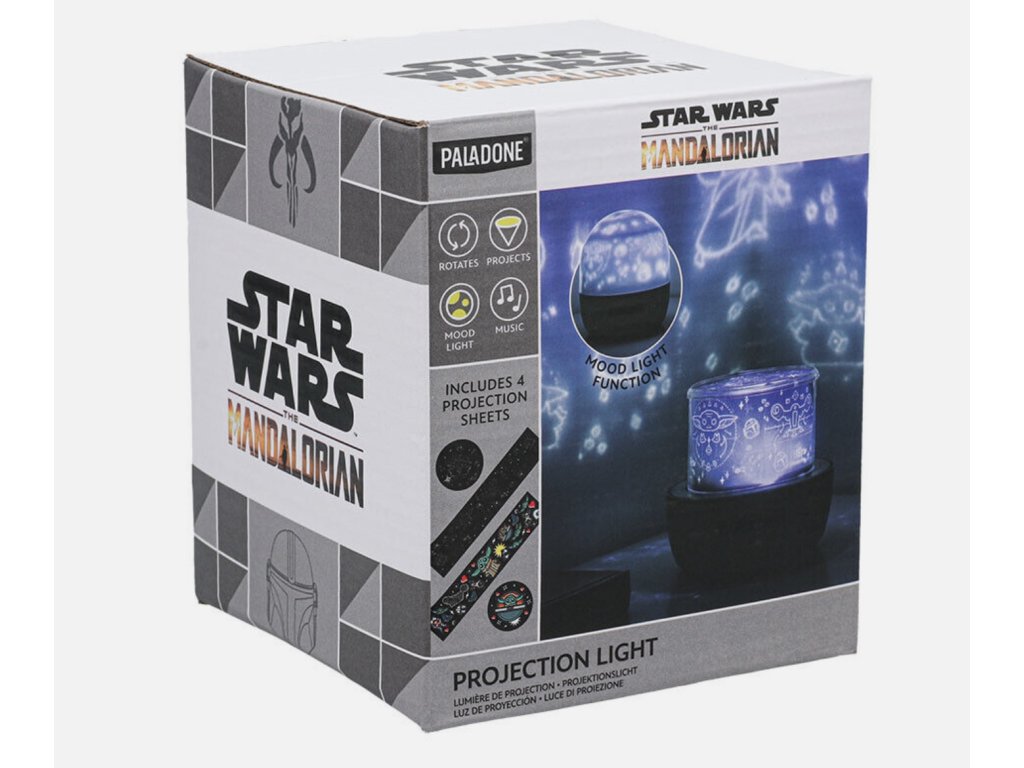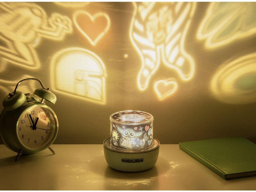 Zaspite v pohodlí galaxie s projekčným svetlom Mandalorian. Vyberte si medzi upokojujúcou hviezdnou bielou scénou Grogu alebo farebnou kolekciou ikon zo sveta Hviezdnych vojen.