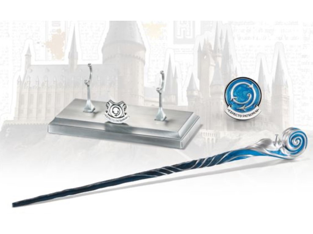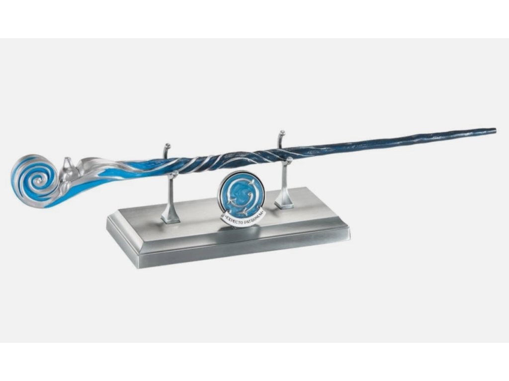 - Zberateľský odznak a stojan sú súčasťou balenia: tento prútik sa dodáva s odlievaným kovovým stojanom a modrým smaltovaným odznakom Patronus, ktorý ukazuje správnu techniku seslania kúzla privolávajúceho vášho ochranného patróna!