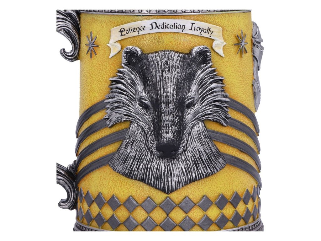 Krásny korbel pre priaznivcov čarodejníckej koľaje Bifľomoru z Rokfortu zdobí množstvo jazvečích detailov! Ucho tvarované do podoby jazveca vám skvele padne do ruky, až korbel naplníte obľúbeným lektvarom. Jedinečný darček pre fanúšikov príbehov o Harrym Potterovi! Ručne maľovaný korbel zo syntetickej živice má vyberateľný nerezový insert pre jednoduchú údržbu. Korbel nie je vhodný do mikrovlnnej rúry ani do umývačky riadu.Dodatočné parametre