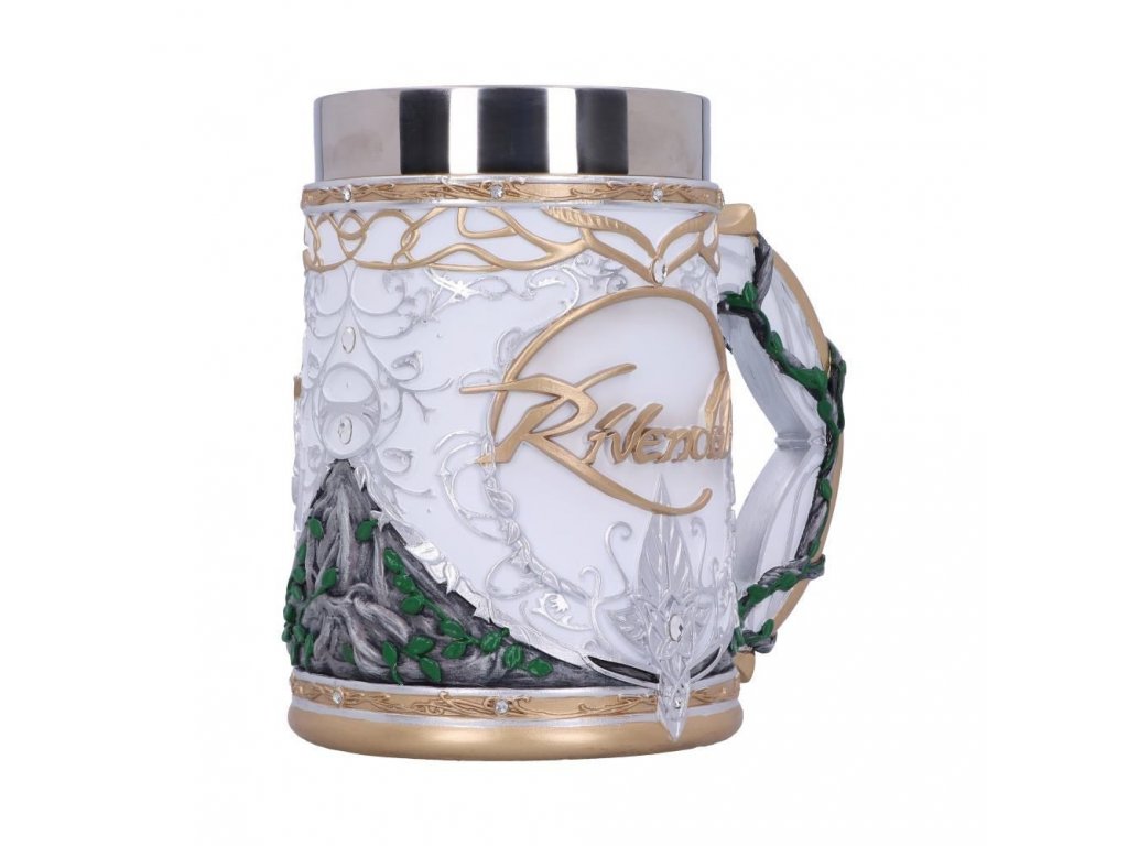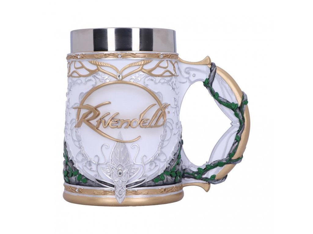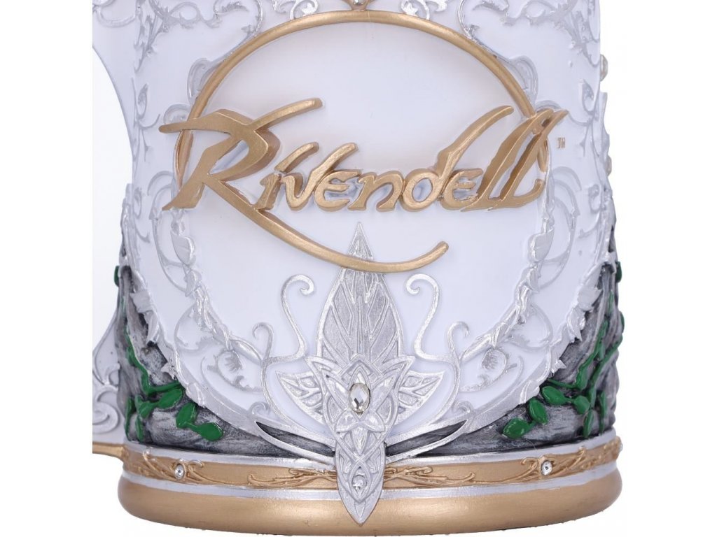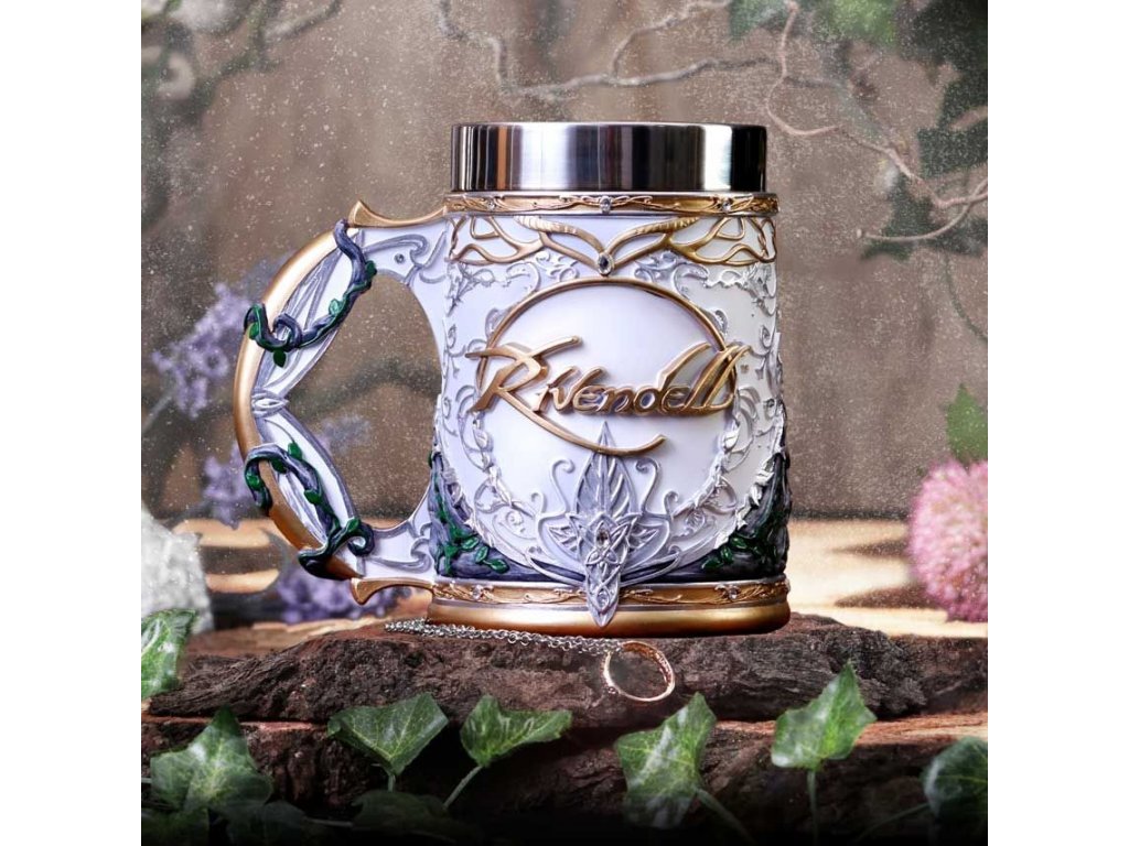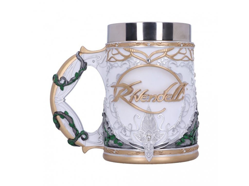 Nádherný korbel z elfského sídla Roklinky (Rivendell) urobí radosť každému milovníkovi príbehov zo Stredozeme a Pána prsteňov! Korbel zdobí množstvo elfích detailov, ako sú úponky vínnej révy či strieborný symbol Arwen Večernice. Vnútorná časť korbela je z nerezovej ocele a dá sa vybrať, čo uľahčuje údržbu. Korbel sám je z resinu (syntetickej živice) a nie je vhodný do mikrovlnnej rúry ani do umývačky riadu.Dodatočné parametre