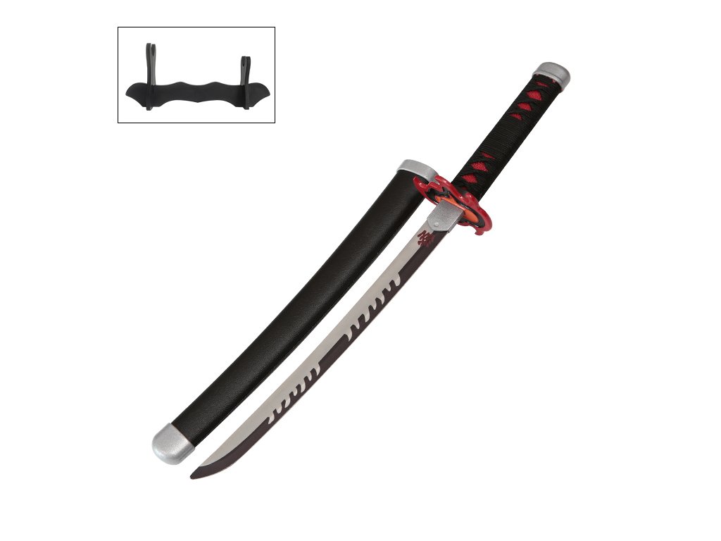 Táto replika je perfektným doplnkom pre fanúšikov epického príbehu Kimetsu no Yaiba a hlavne postavy Tanjira Kamada. Táto katana má tupú čepeľ vyrobenú z nerezovej ocele, takže katana je ideálna na výstavu. Záštita je tiež vyrobená z nerezovej ocele a rukoväť má tkaninový oplet. Aj keď nie je určená na používanie ako ostrý meč, ani ako tréningový nástroj, môže slúžiť ako skvelá dekorácia do Vašej zbierky.