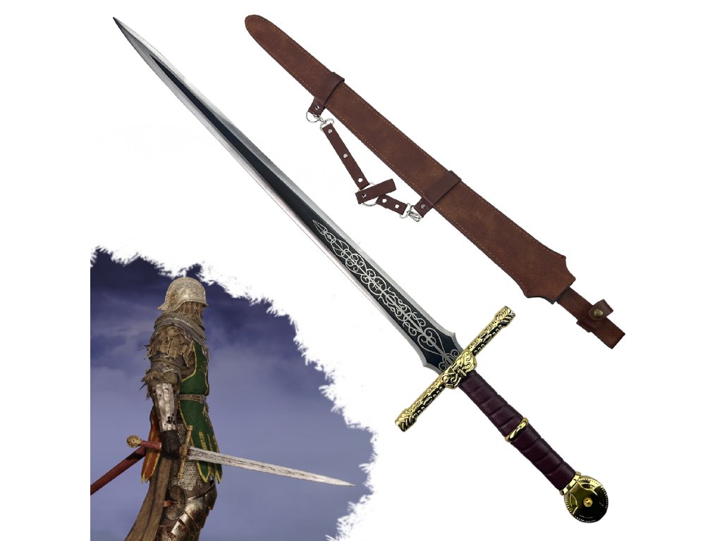 Replika známého meče Lordsworn's Straight Sword z videohry Elden Ring, kde jím byli vybaveni bezhlaví vojáci Mauzolea. Čepel je vyrobena z nerezové oceli, rukojeť z imitace kůže a záštita z hliníkové slitiny. Čepel není ostrá.