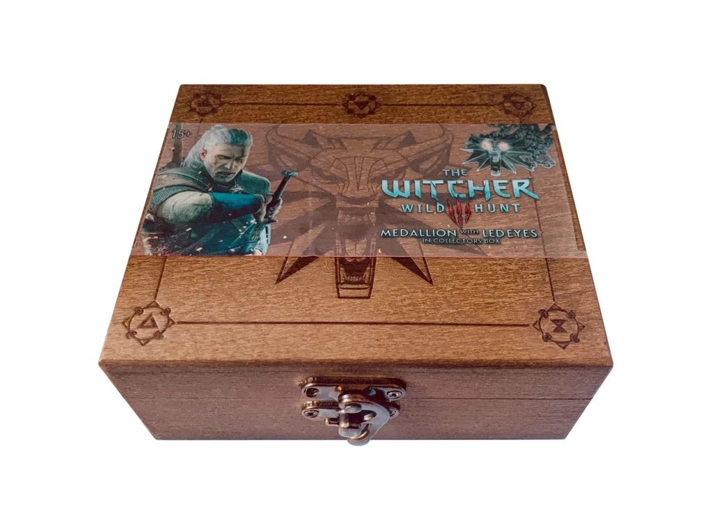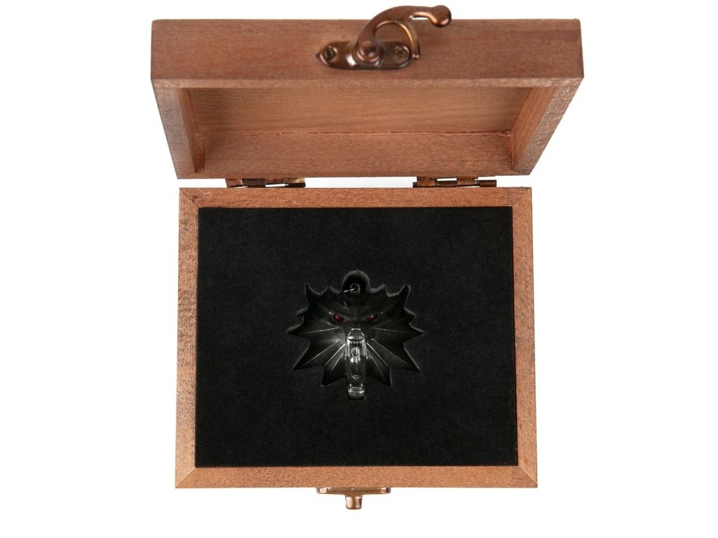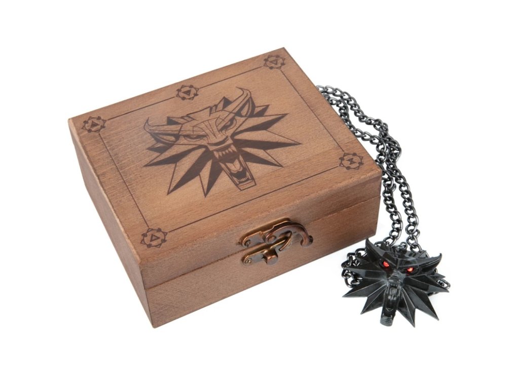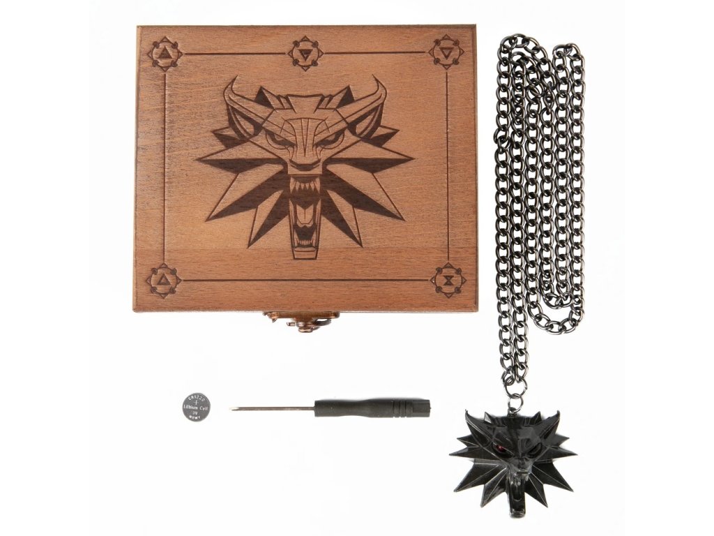 Medailón školy Vlka, ktorý nosí zaklínač Geralt z Rivie v populárnej videohre Zaklínač 3: Divoký hon (The Witcher 3: Wild Hunt) môže byť váš! Medailón sa ukrýva v peknej darčekovej krabičke, súčasťou je retiazka dlhá cca 76 cm. Vlčie oči sú vybavené LED svetlom, ktoré rozsvietite pomocou spínača (vymeniteľná batéria je súčasťou balenia). Krásny darček pre všetkých milovníkov dobrodružstva Bieleho vlka!Dodatočné parametre