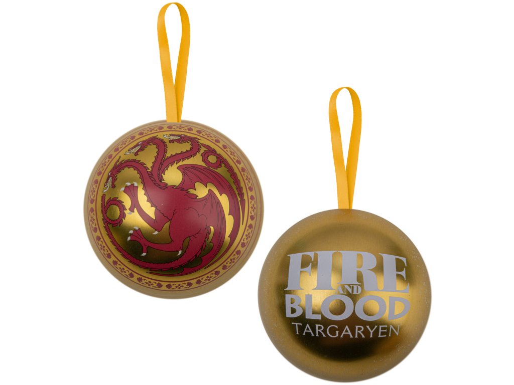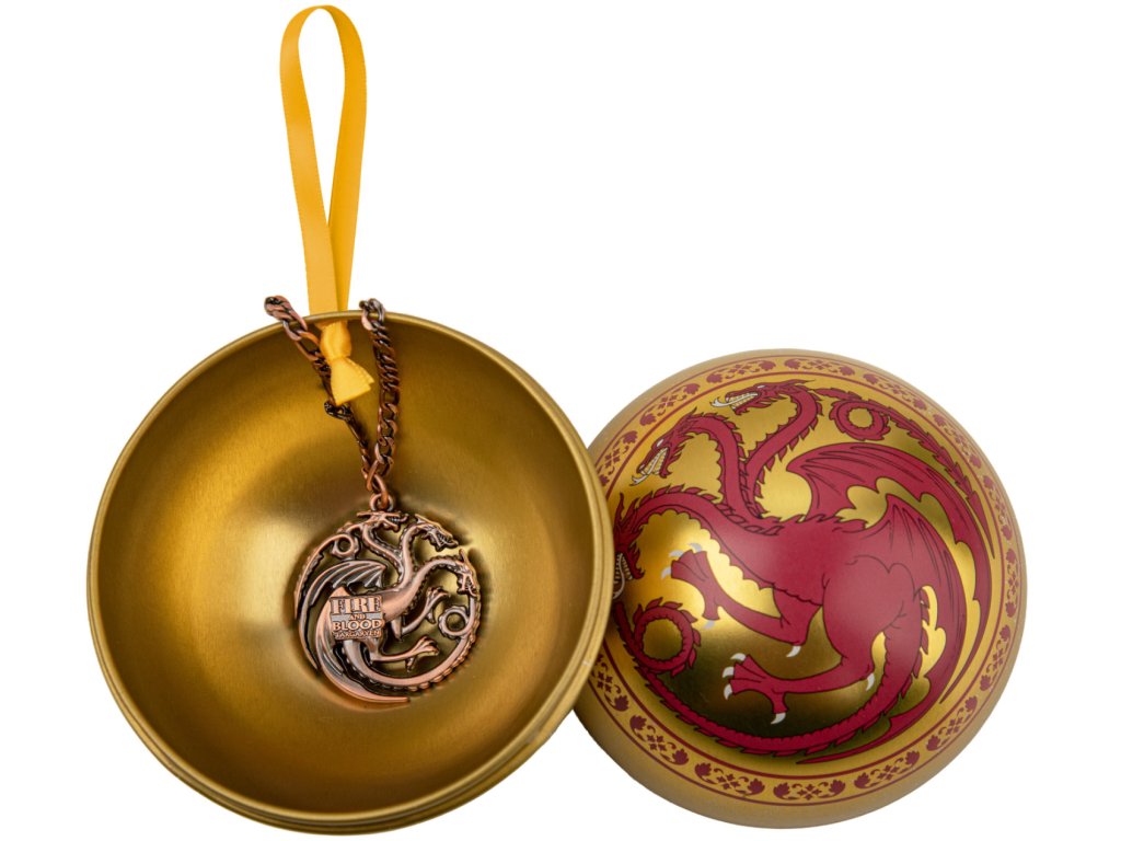 Prijmite ducha Siedmich kráľovstiev a ozdobte svoj stromček nádychom mystiky s vianočnou kapsulou Targaryen. Objavte nádherný náhrdelník Targaryen ukrytý vo vnútri tejto vianočnej kapsuly.