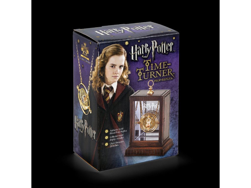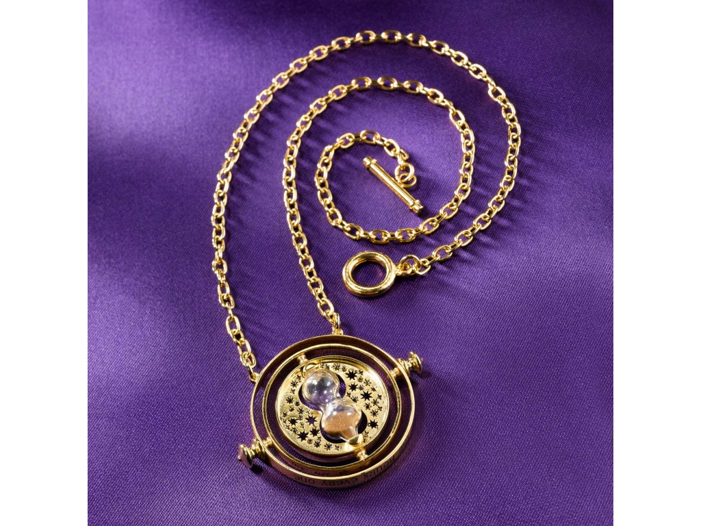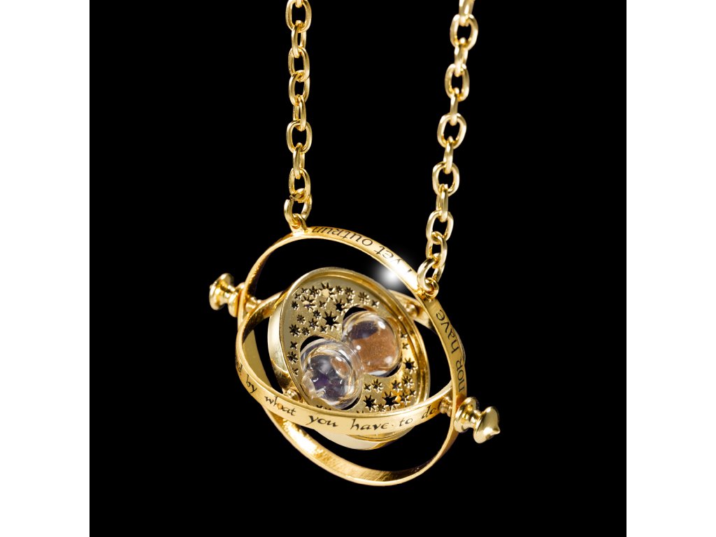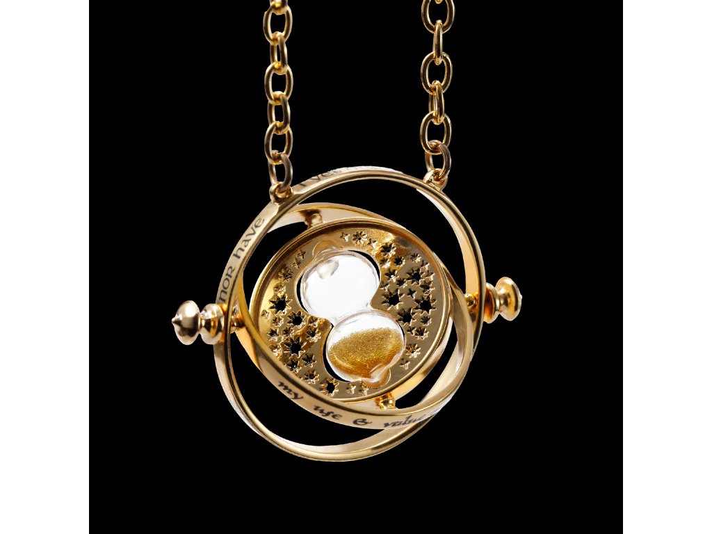 Žiarivo pozlátená replika Hermioniného obracača času, ktorý Hermiona používala v treťom ročníku na cestovanie späť v čase, aby mohla absolvovať viac hodín, doplnená o retiazku s dĺžkou 45 cm a výstavnú krabičku. Obracač času je vycentrovaný funkčnými miniatúrnymi presýpacími hodinami a jeho vnútorné krúžky sa otáčajú a ciferník má priemer približne 3,5 cm.