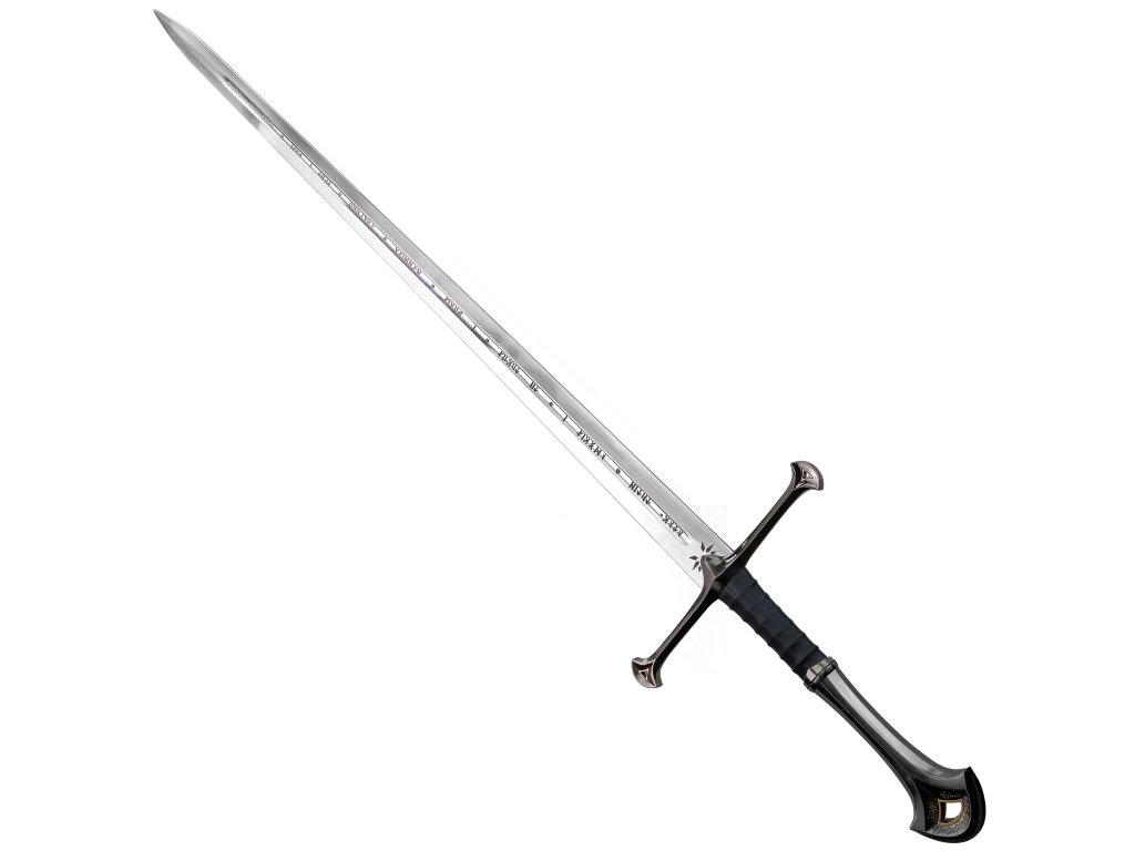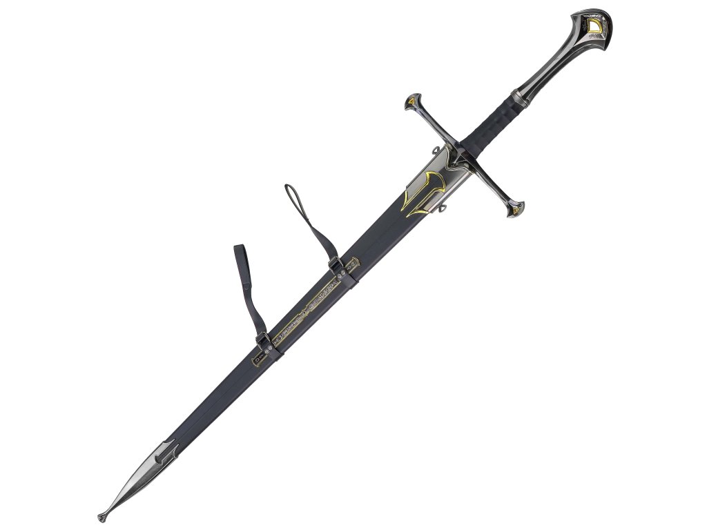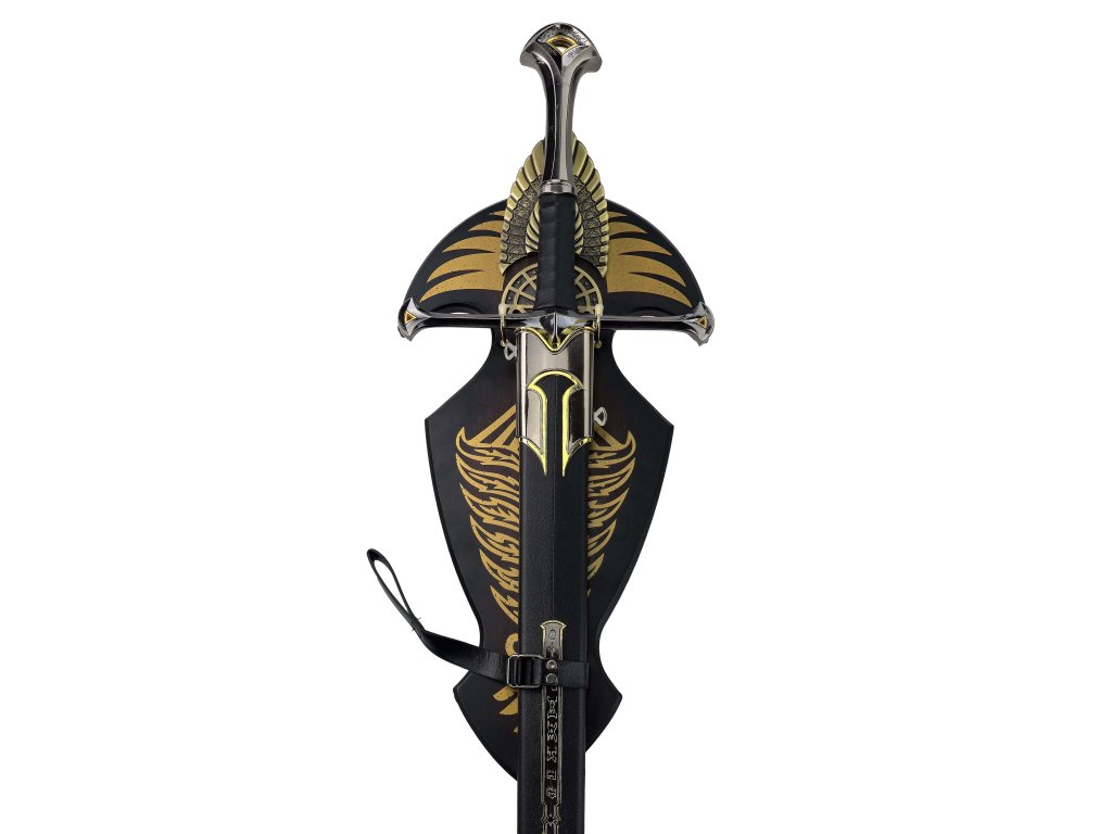 Ocelový Anduril "THE SWORD OF ARAGORN" s pochvou i plaketou - Pán Prstenů