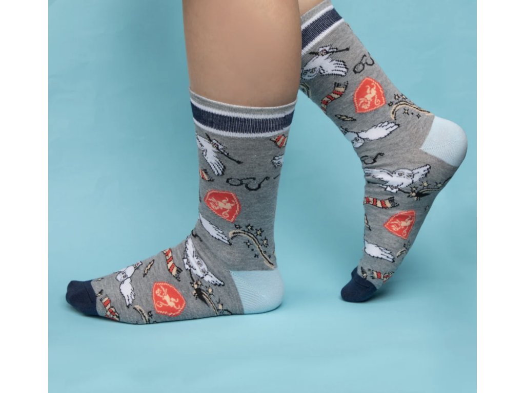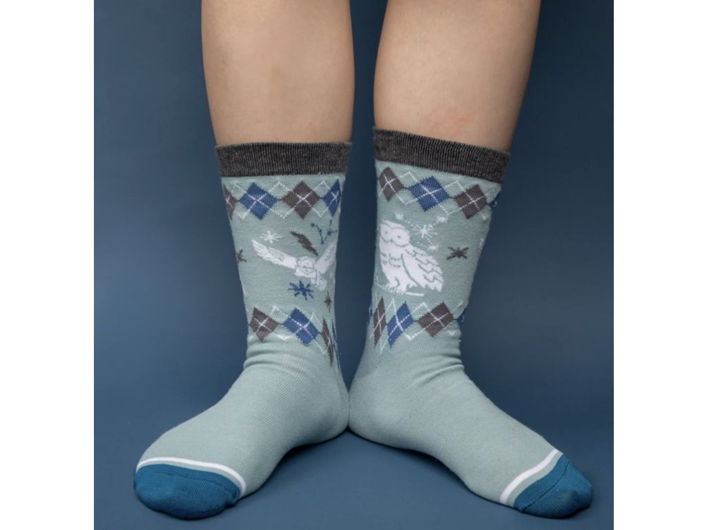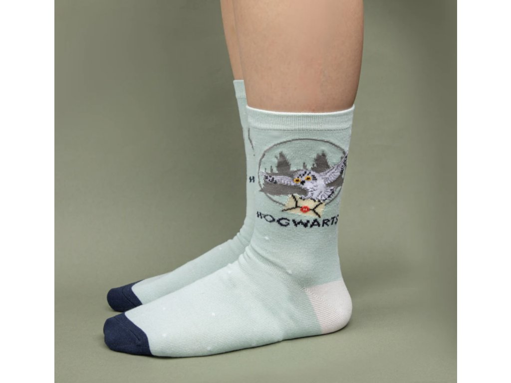 Dve ponožky v tejto sade majú minimalistickejší prístup, zdobené jednofarebnou modrou farbou s obrázkom Hedvigy v centre pozornosti. Naproti tomu jedna ponožka má celoplošný vzor, ktorý spája Hedviginu prítomnosť s ikonickými okuliarmi Harryho Pottera, prijatím do štúdia, symbolom Chrabromilu a šatkou Chrabromilu.