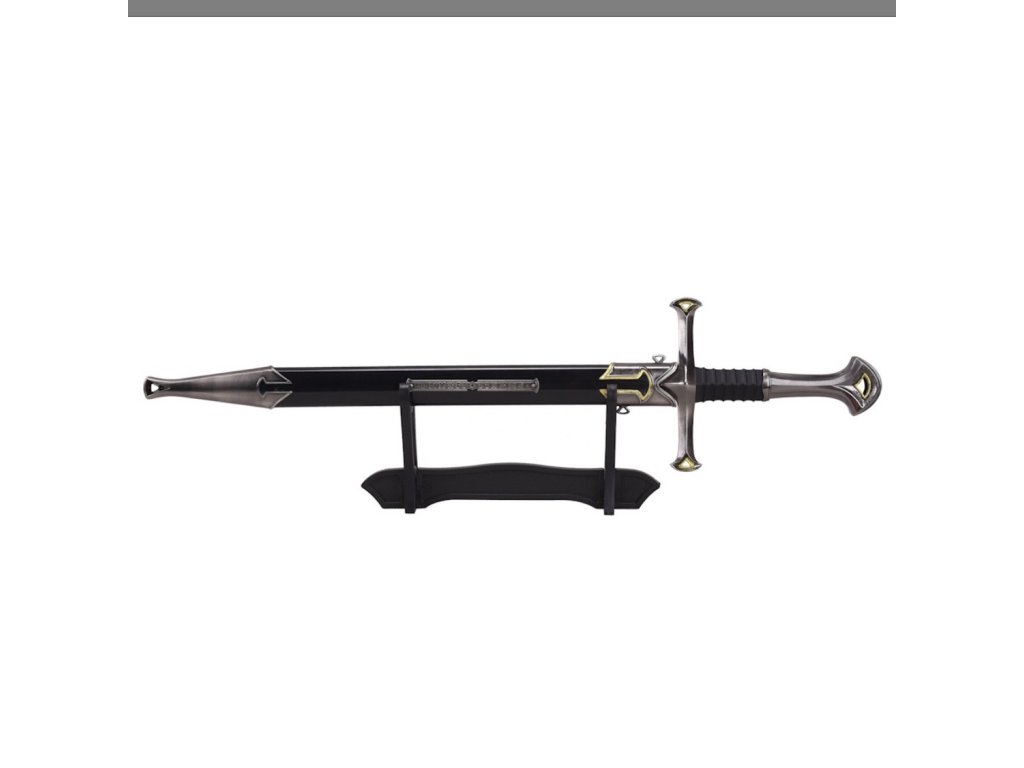 Mini ornamentálny meč je detailná dekoratívna replika legendárneho meča Andúril, ktorý v príbehoch Pána prsteňov nosí Aragorn. Napriek svojej kompaktnej veľkosti pôsobí veľmi realisticky a je ideálny ako zberateľský predmet, darček alebo elegantná dekorácia na stôl či poličku.