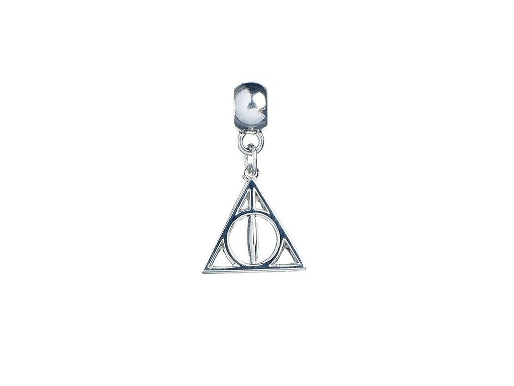 Postriebrený prívesok na motívy Harry Pottera v podobe Dary smrti. Na opačnej strane prívesku sa nachádza logo Warner Bros.