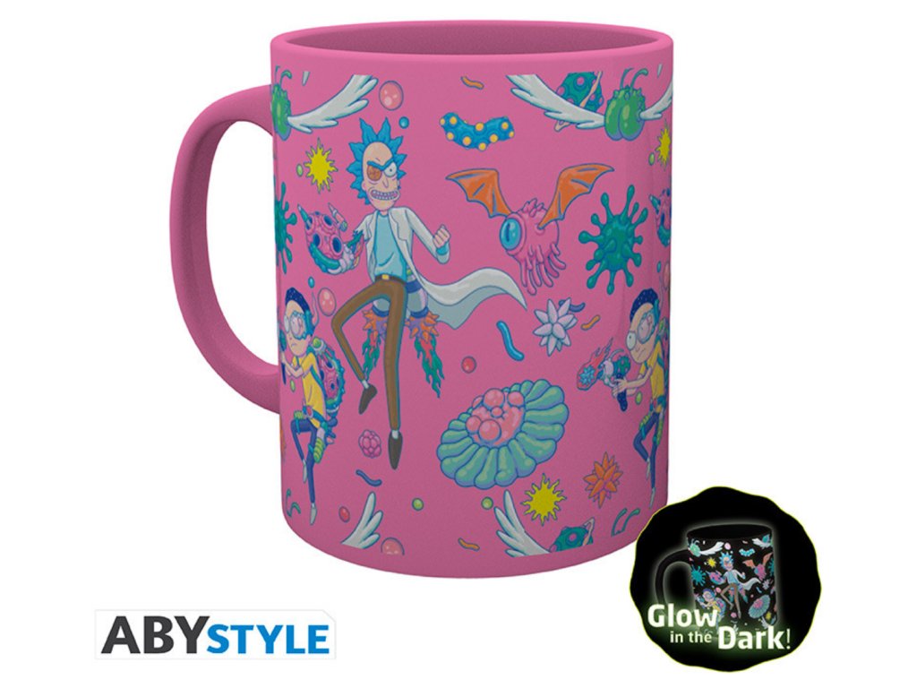 RICK AND MORTY - Balenie pohárov XXL + hrnček + 2 podložky Pattern Svietiace