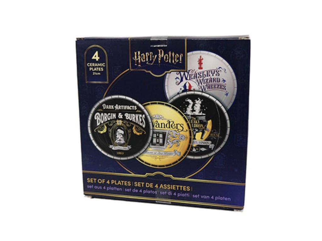 Sada 4 tanierov s farbami najikonickejších obchodov z Diagon Alley.