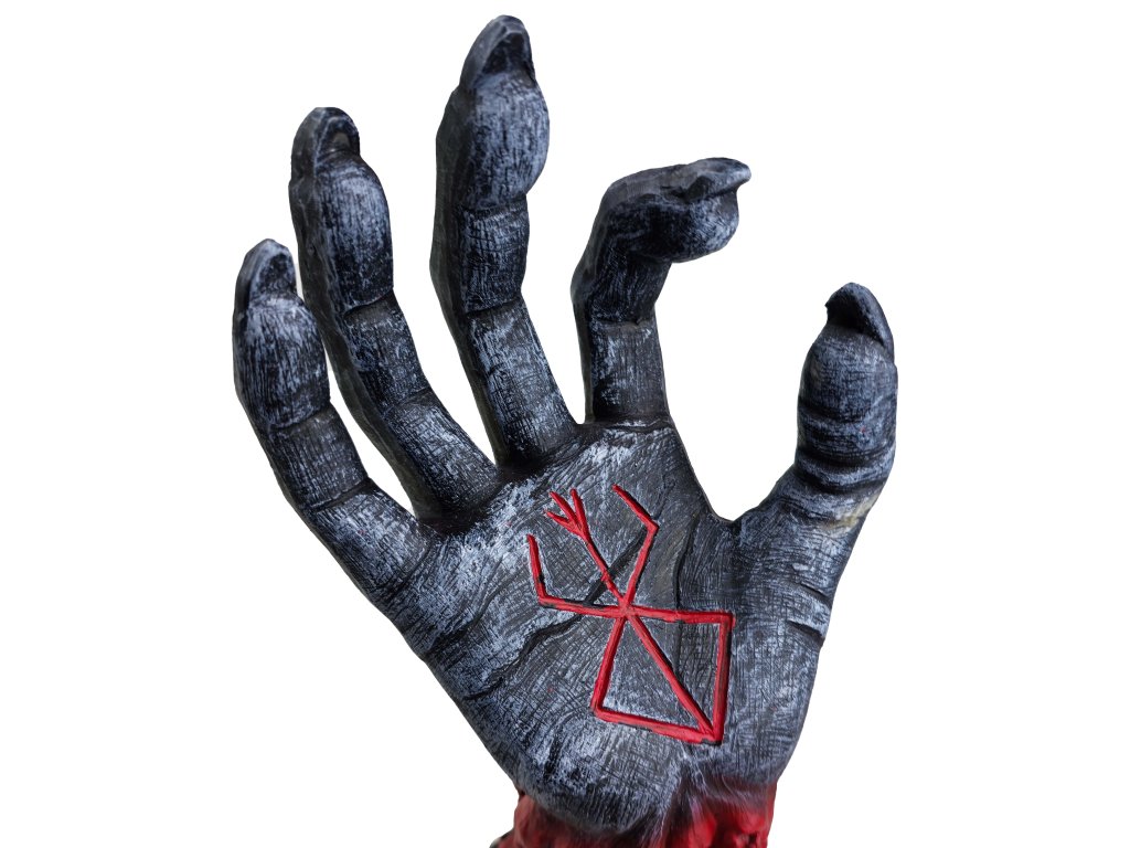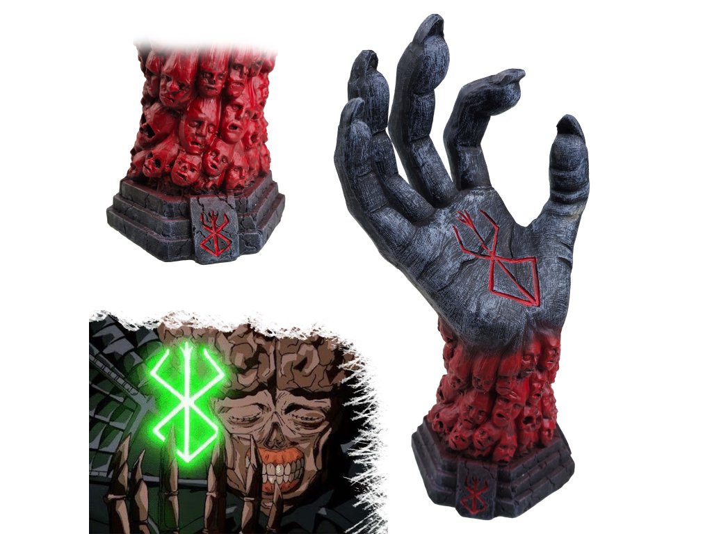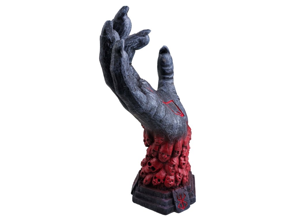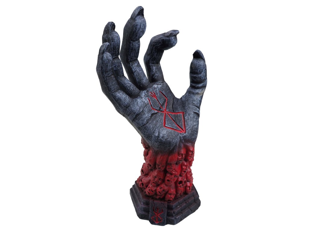Jej detailné prevedenie dodáva priestoru temný vzhľad, tak ako by bola priamo z Berserkra. A čo viac, táto soška má tiež praktické využitie - možno ju využiť, ako výstavnú držiak ako sú prstene alebo náramky. Výrazným prvkom tejto sošky je Mark of sacrifice umiestnený na dlani ruky.